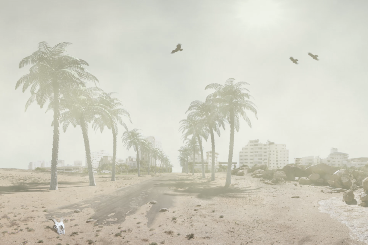 Rising temperatures also meant that more median energy was stored in the atmosphere. This, in turn, acted as an agent for higher levels of micro-particles to be suspended in the 'air'. However, one way of using this pollution to a consumer's advantage was to project messages into the sky via 'reflecturing'. In short, an image was being projected onto the sky which used certain layers of micro-particles as aerosol-canvas.