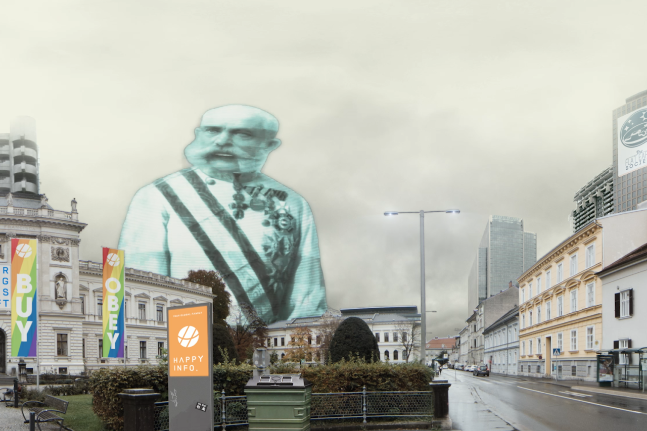 The user will be immersed in a dystopian 3D environment via a smartphone or tablet which maps a possible future over the actual, current urban topography. The scenes are animated and locked to specific geolocated markers in order to align with and and imitate any movement the user wishes to make. Additionally a specific sound-design will be created that will deepen the immersive character of the 'mini-movies'. Once the user dis-engages the app or simply puts down his smart-phone he or she should experience the city and its qualities, its esthetics and 'natural' environments from a new, refreshed and holistic point of view. Furthermore the city can be explored in a joyful and 'game-app' kind of way by guiding users to unknown or less frequented places.
