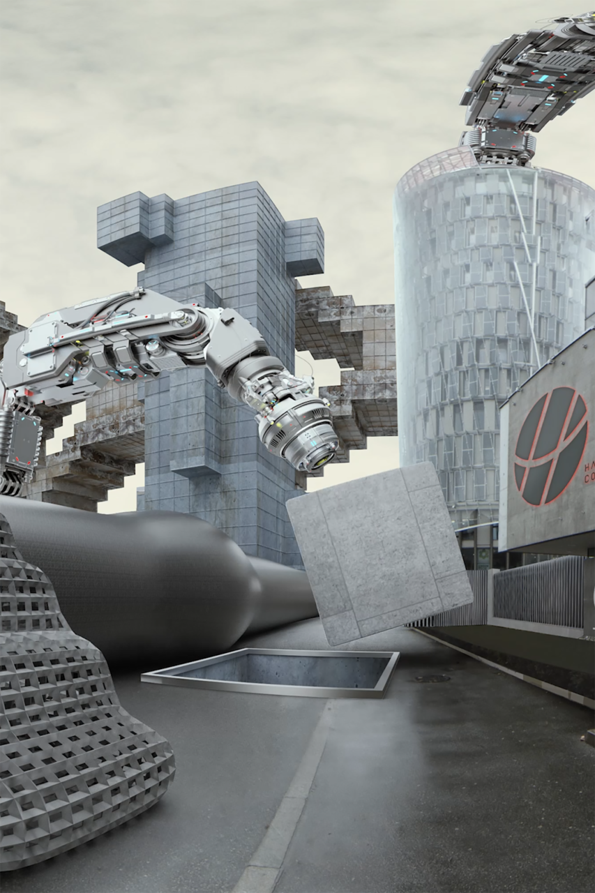 The concept of 'aesthetics' had been abandoned completely under the aegis of 'FAST-HAUS' school in the early 2050s which freed up building speed and intensity. The paramount priority for architecture was quantity. These paradigms provided the perfect setting for AI in urban developments, both in planning and construction. Occasional 'glitches' – structural or static miscalculations / unstable structures - were regarded as a necessary learning curve for the so called 'Arch-Bots'.